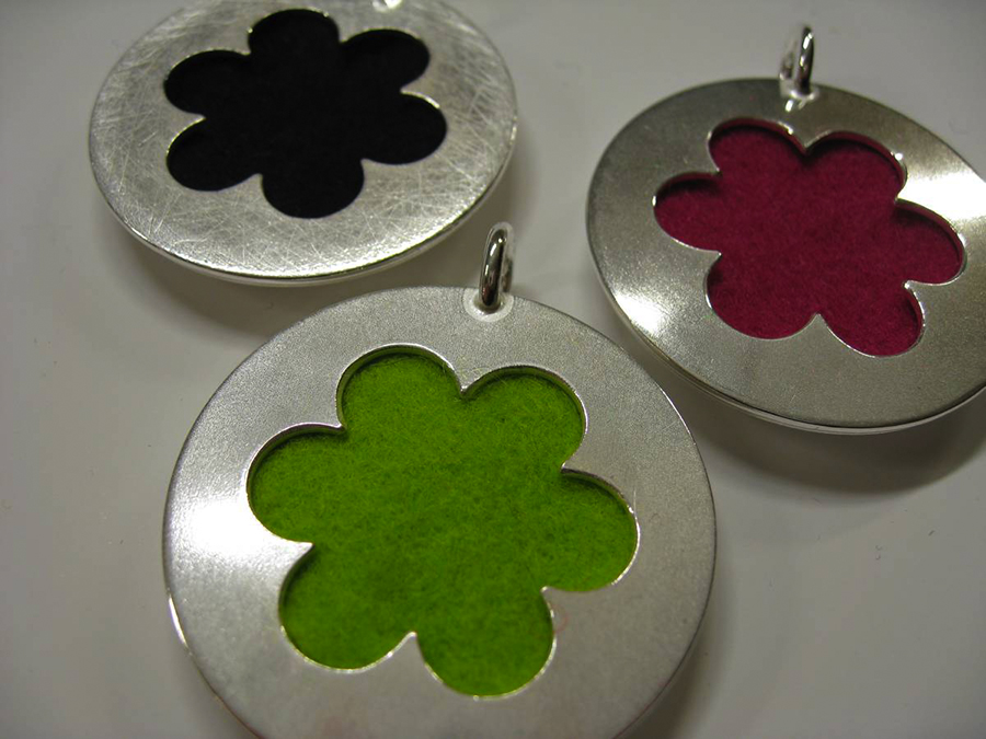 Die Etuis, ebenso gefertigt in reiner Handarbeit - bedruckt in Silber - lieferte in